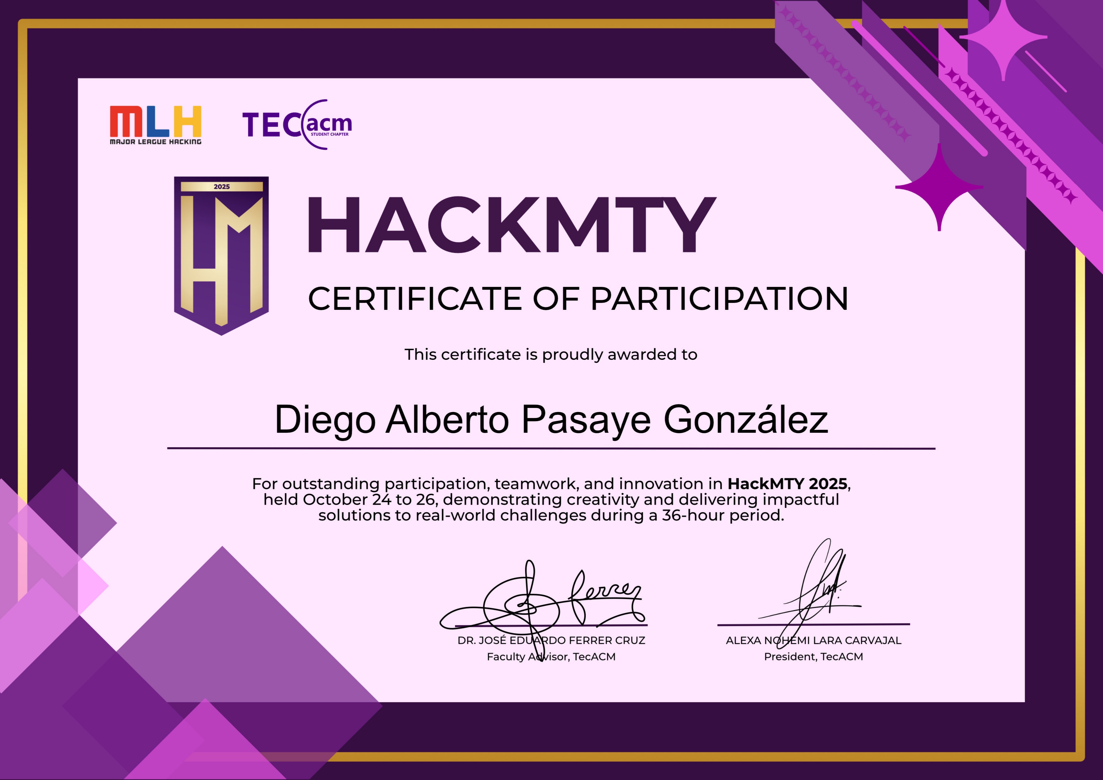 A certification for the skills, time and effort that were put into developing novel and high-performing solutions in Latin America's biggest hackathon